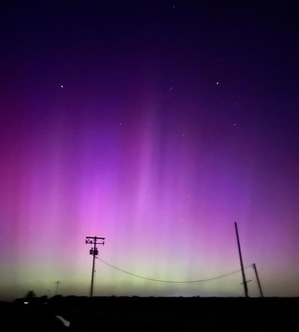 “I was sitting there and talking, and then somebody just yells around 11:30, ‘Oh my God, we can see it!” Cantrell said. She jumped up, ran over to the ledge on the north end of the building, and eagerly looked out into the dark sky. She was rewarded with the sight of the pillars of light and pink and green spots that marked the phenomenon.