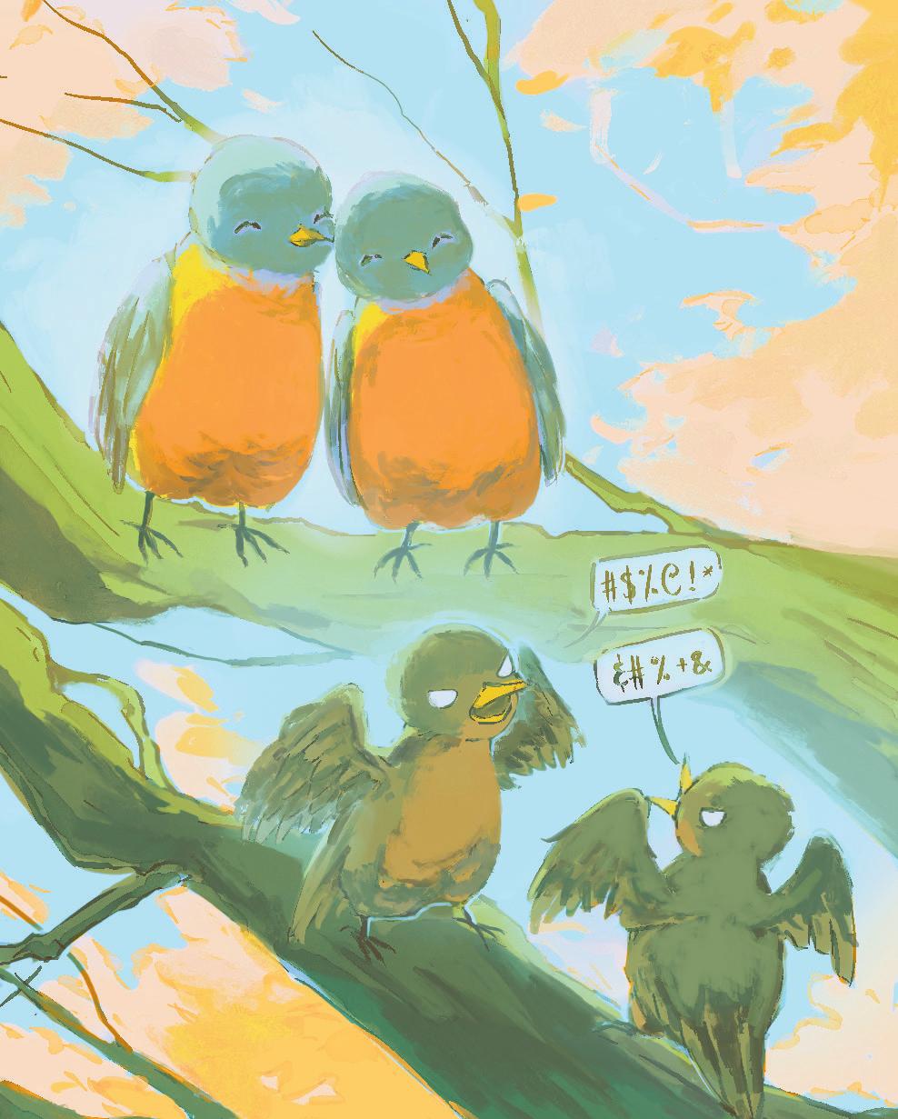 Falcons are very di erent from the great tits. ey have smaller clutches and receive more parental care, which also impacts their sibling relationships.
