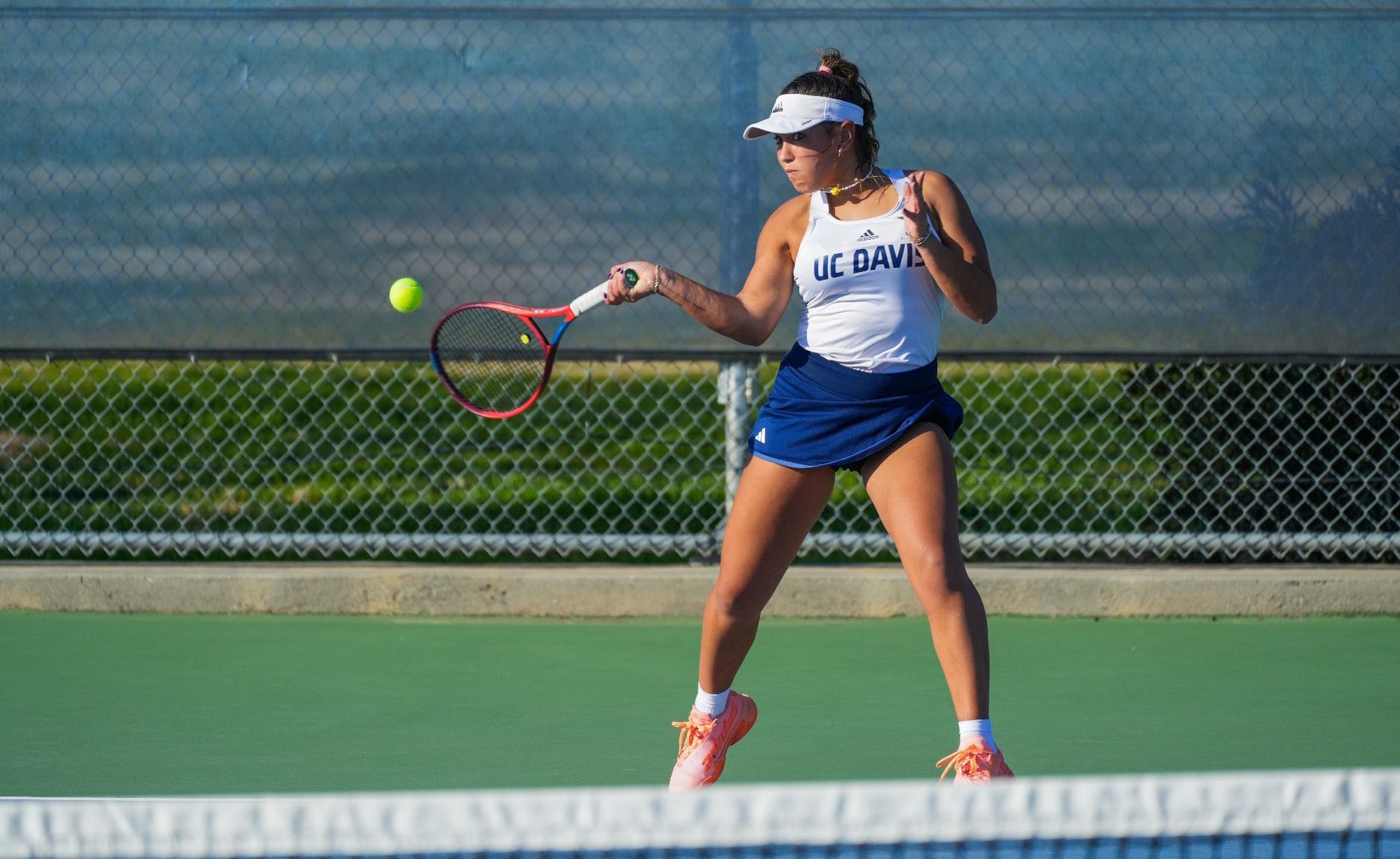 Te last UC Davis player to play in the singles division and advance past the frst round was Sofa Valentine, a frst-year undeclared major, who went up against the University of Oregon’s Candela Aparisi. Valentine provided a strong performance and took the frst set with a score of 6-0. Aparisi attempted a comeback to win the second set, but Valentine ultimately