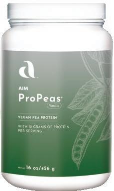 ProPeas is one of the first pea proteins ever launched in the marketplace, representing AIM’s focus on plant-based supplements. Flavored with vegan vanilla and sweetened with stevia, ProPeas delivers 12 grams of protein in each serving of sugarless powder.