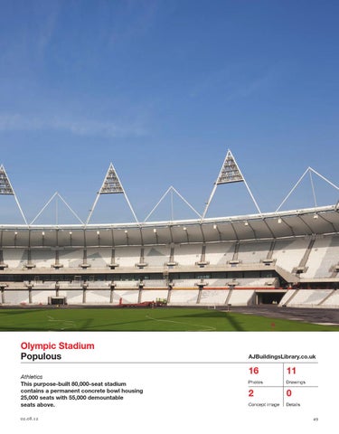 Olympic Stadium Populous Athletics This purpose-built 80,000-seat stadium contains a permanent concrete bowl housing 25,000 seats with 55,000 demountable seats above. ..