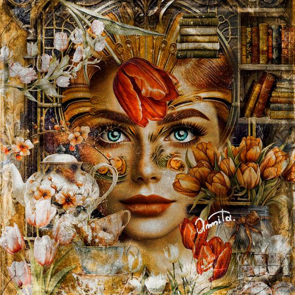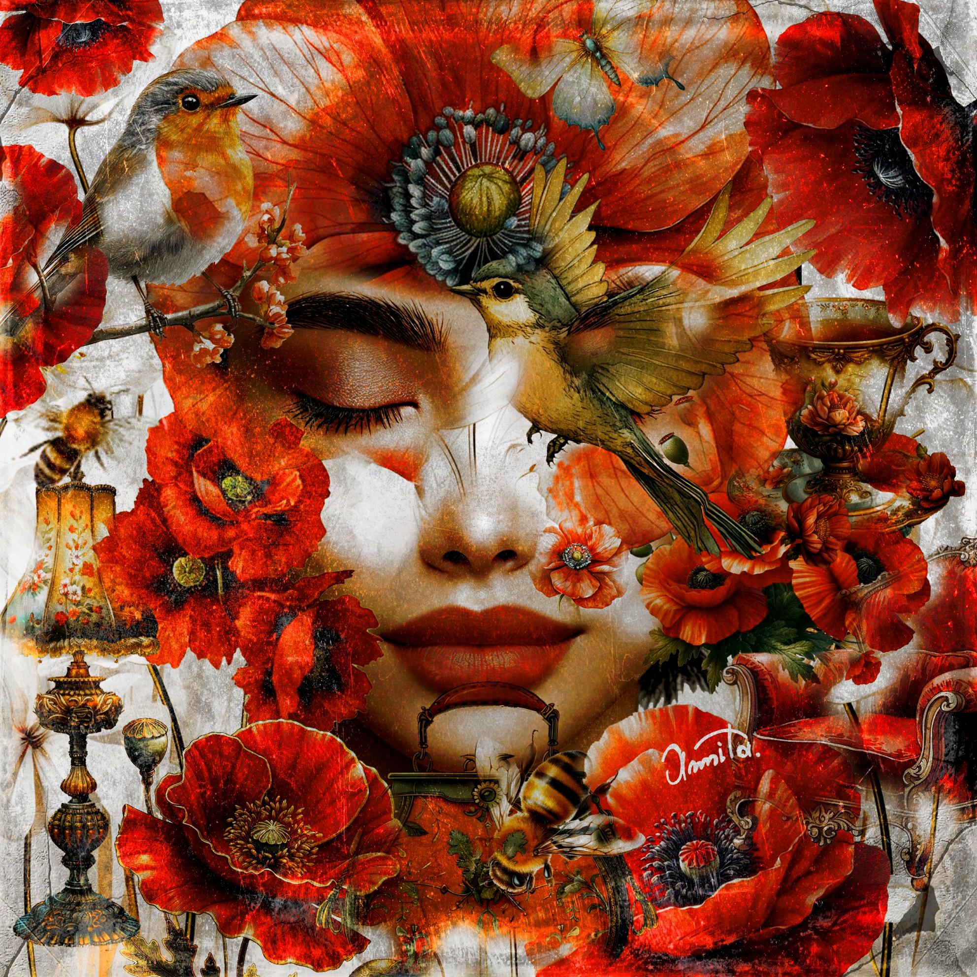 Annita Apostolidou Platis is a multidisciplinary artist whose work explores cyclical transformations, mythology, and the passage of time. With a background in Haute Couture Design, she blends acrylics, ink, impasto, and digital collage to create vibrant, textured compositions that capture the dynamic interplay of femininity and history.
