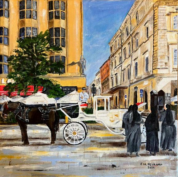 Esa Heiskanen, a self-taught artist originally from Finland, turned to painting during the Covid years after his career as a flight attendant was put on hold. Reconnecting with art, he rediscovered his creative passion, and now living in the vibrant city of Kraków, Poland, he draws inspiration from its beautiful architecture and dynamic cultural scene.