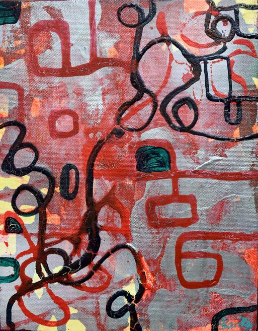 You describe your paintings as a reflection of personal emotions. How do you approach translating your feelings into visual form? Creating art feels like secondnature to me—it's an intuitive and meditative process that allows me to connect deeply with myself. Abstracts are my absolute favourite to paint because they are the purest expressions of my emotions on canvas. Every brushstroke, crayon mark, texture, and colour reflects my thoughts, feelings, surroundings, and perceptions. It's like translating my inner world directly onto the canvas, raw and unfiltered.