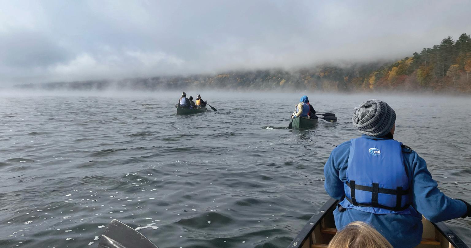 Top photo: Students from Martha’s Vineyard Public Charter School explore Lake Morey on a beautiful (and brisk!) fall morning. Instructors teach canoe strokes and the parts of a canoe, and groups often spot turtles, birds, and fish as they explore open waters and marshes.