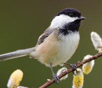Chickadees are so named because of their call, which sounds like “chick-a-dee-dee-dee.” The blackcapped chickadee can be distinguished from others by its white cheeks and black head and throat. Look for them in the woods around camp. Chickadees are a peace-making bunch. In the winter, when foraging is tough, they often act as “nucleus species,” bringing together groups of different birds, such as woodpeckers, nuthatches, creepers, and kinglets, to cooperate and find food together.