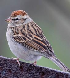 Chipping sparrows are common birds to see foraging on the ground in open areas. They’re small with a long tail and a red stripe down their heads (both male and female have it before nesting) and a prominent white brow. These are birds that have adapted well to human intrusion; once they lived primarily in forests, but now do quite well in