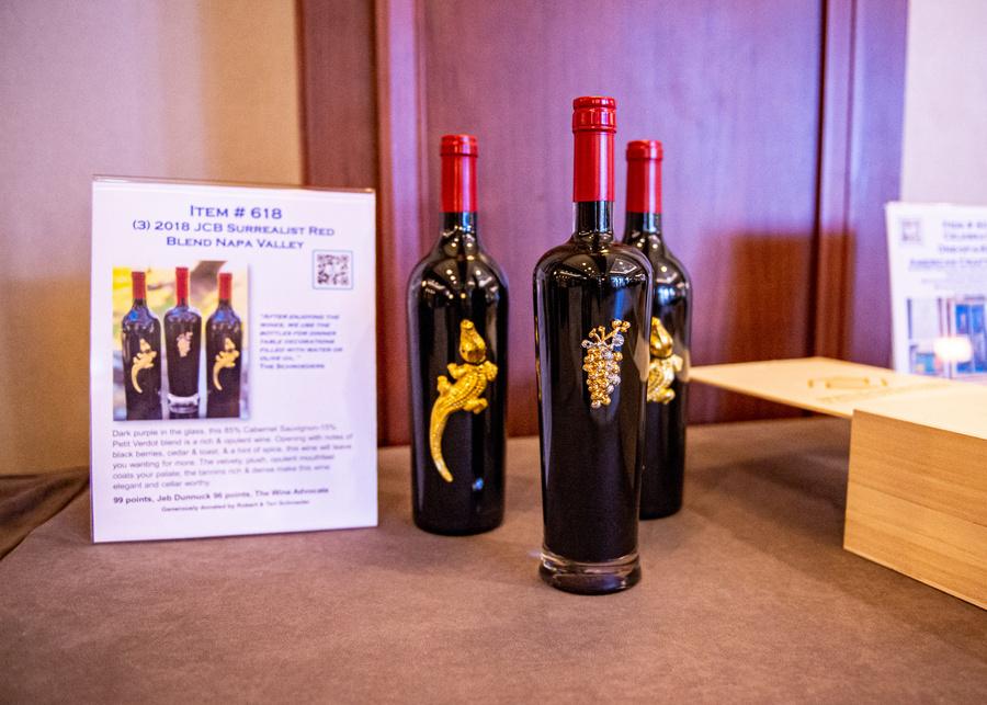 The foyer was decorated with fabulous silent auction items generously donated by individuals and businesses in our community A few highlights included beautiful paintings by local artists, delicious fine wines, sparkling diamond-studded jewelry, autographed memorabilia, and fantastic vacations.