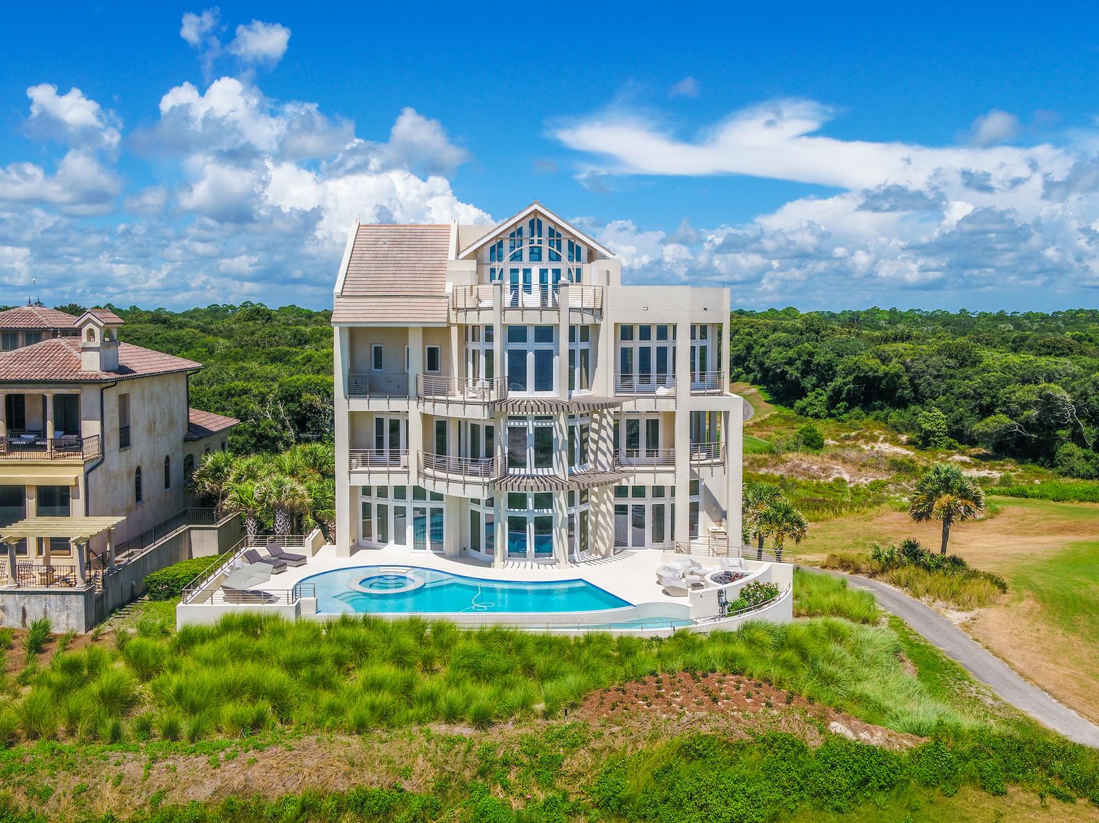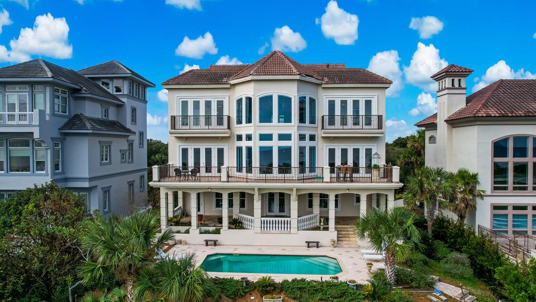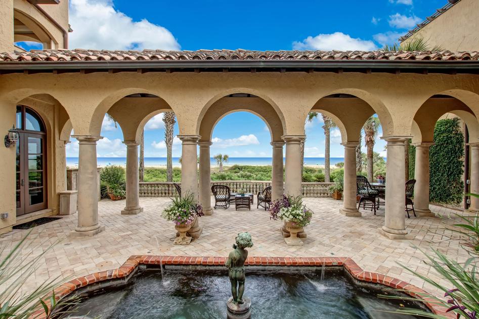 Stunning views of the Atlantic Ocean abound from one of the most private oceanfront homes on Amelia Island. Introducing 4 Dunes Court which embodies the most desirable attributes of a quintessential Mediterranean estate: expansive ocean views, dedicated beach access steps from an unusually gracious terrace, colonnade, balconies, screened loggia, all oceanfront and uniquely private.