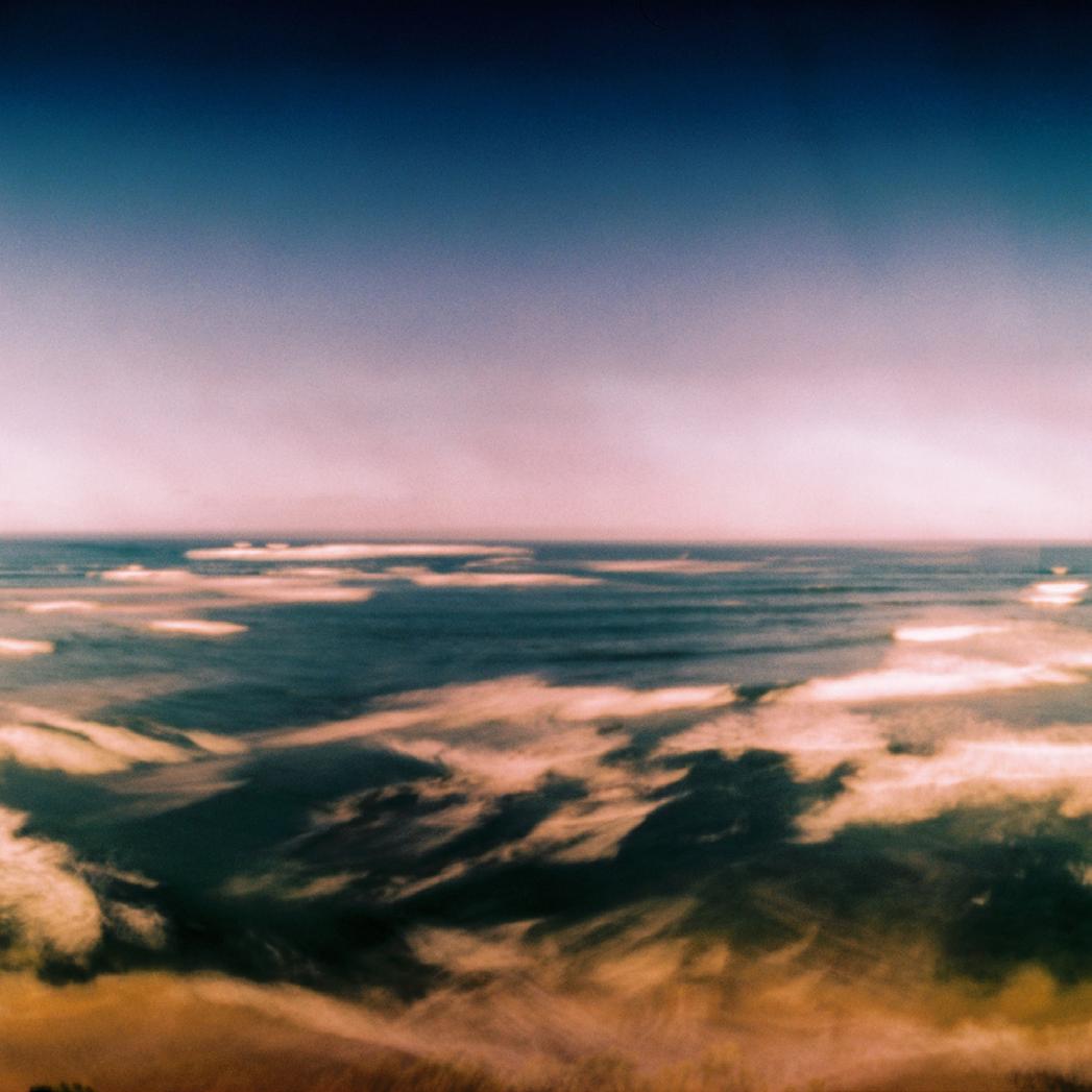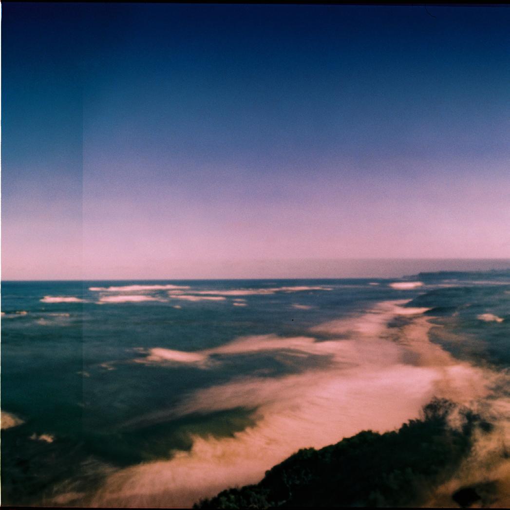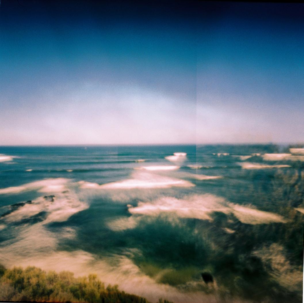 “There is no digitisation or computer manipulation with my work practice. My only intent is to make a beautiful image from a flawed and faulty process. My series work explores edges where land meets water, movement of waves and clouds.”