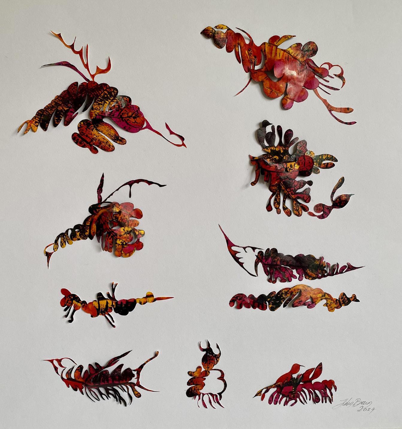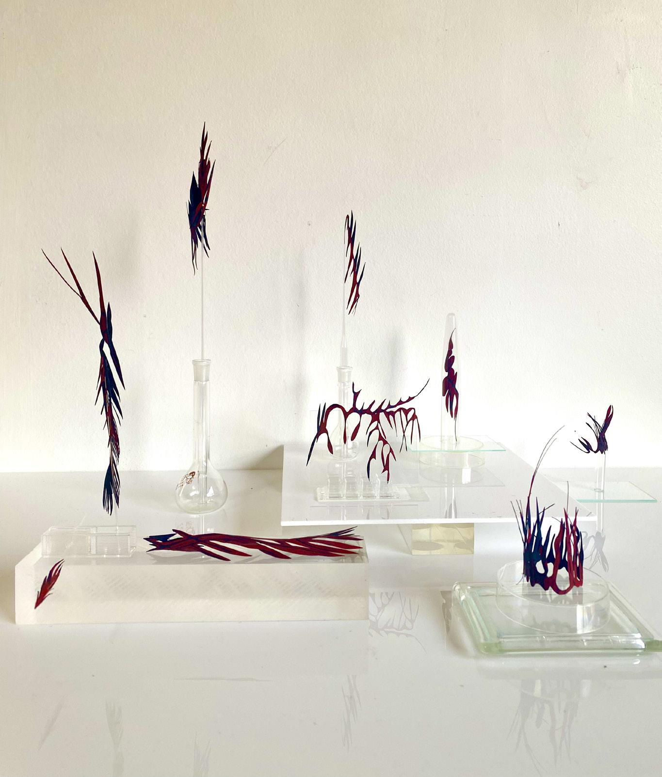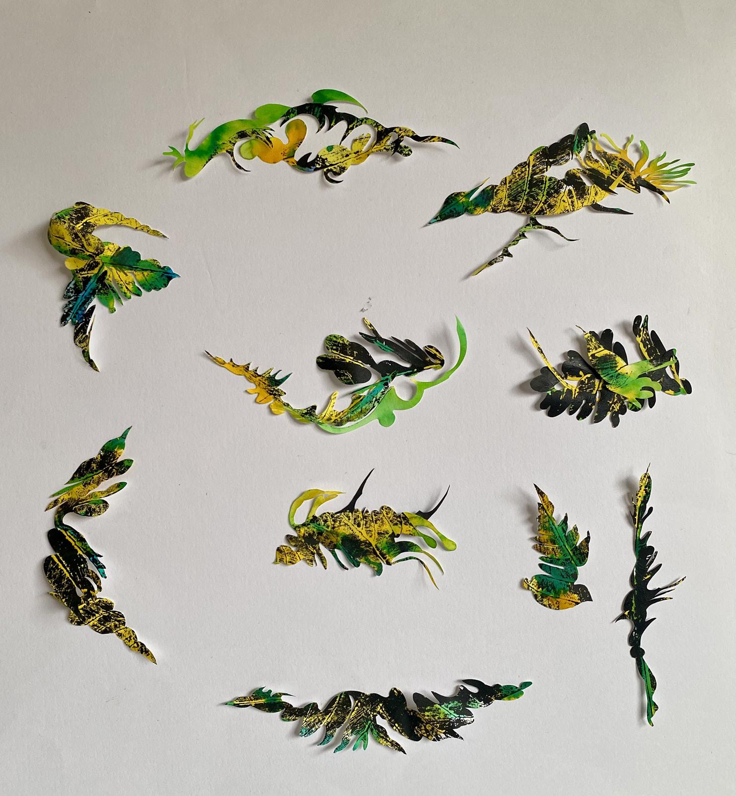 “From towering forests, to fuzzy bread mould, crack sprouted seeds to lush tree fern valleys, microscopic organisms to leaf litter crawl and estuaries of everything, we are not apart. The entwine of the natural world evolves; a cast of shadows and reflections, languages brittle soft flowing still, insistently informing my makings. Ambiguous cuttings of black paper, clear sharp glass, translucent parings. Reflective musings to the clash and caper of nature, where beauty and horror sit side by side, the sinister and the sublime holding embrace within the constancy of change.”