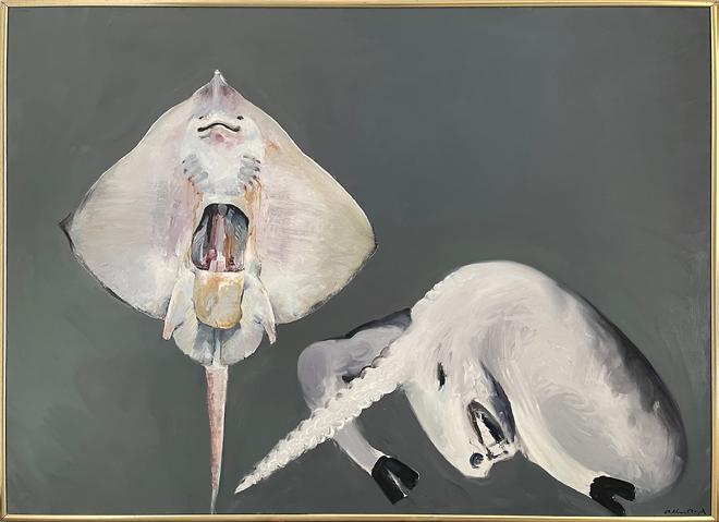 I used to watch the fisherman throw their kite-shaped skates up on the shores … Skates swim with a pink underside human-like face looking down into the water, and when these tender undersides were exposed on the sand, they seemed to symbolize absolute vulnerability.