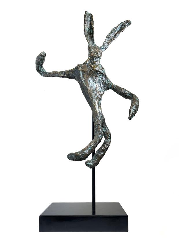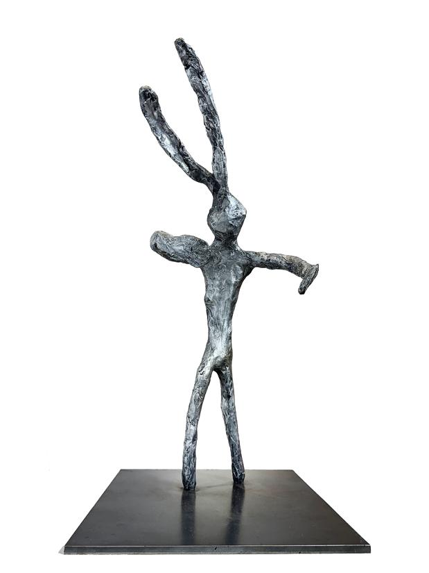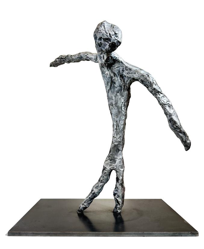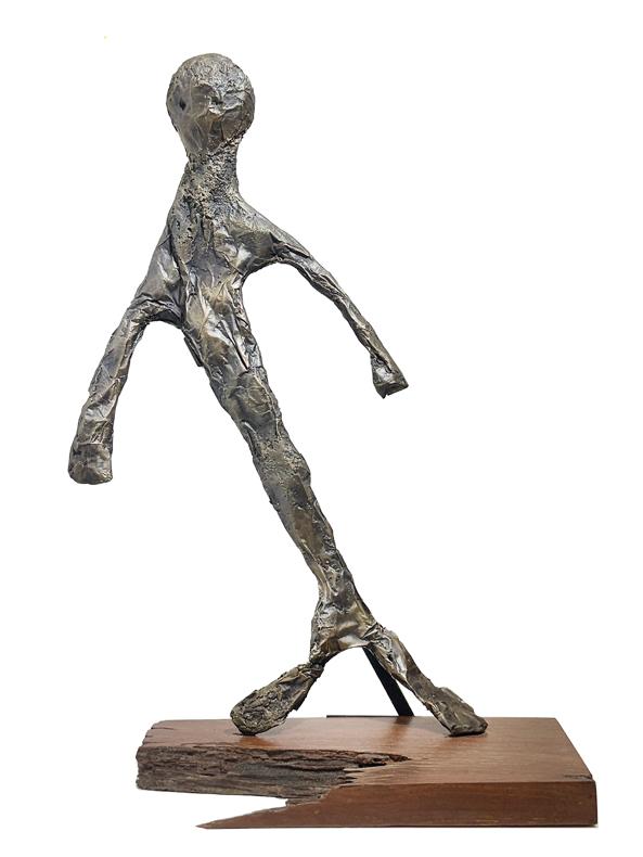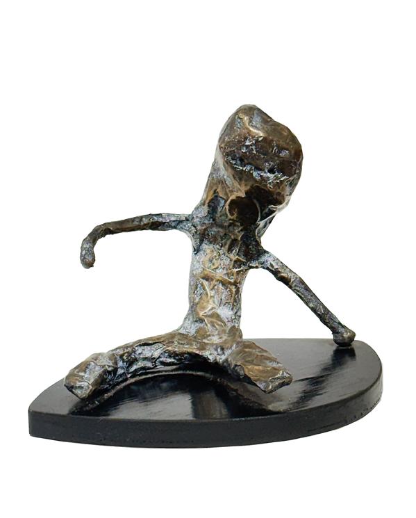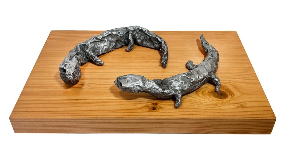 Working instinctively and with immediacy, he creates intricate sculptures that capture fleeting moments of intimacy and movement. Using humble, everyday materials—masking tape, aluminium foil, wooden skewers—he constructs figures that radiate a raw, spontaneous vitality. These ephemeral forms are then cast in bronze, aluminium or concrete, preserving their delicate energy while transforming them into enduring objects with richly textured surfaces and nuanced patinas.