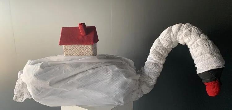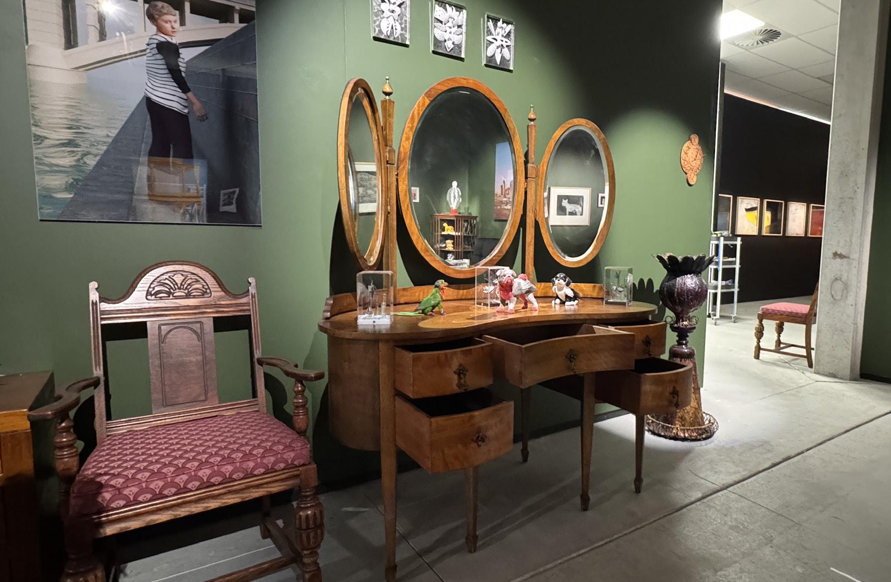 We thank our collaborators at the Rotary Opportunity Warehouse, run by the Rosebud/Rye Rotary legends on Henry Wilson Drive. This hidden gem of the Mornington Peninsula offers ever-changing furniture treasures, raising money for great causes. For this project we selected key pieces to create a lived-in setting, even including family photos (thanks to Napoleon, Tatlin & Dolores for their permission). Into this environment we placed artworks throughout.