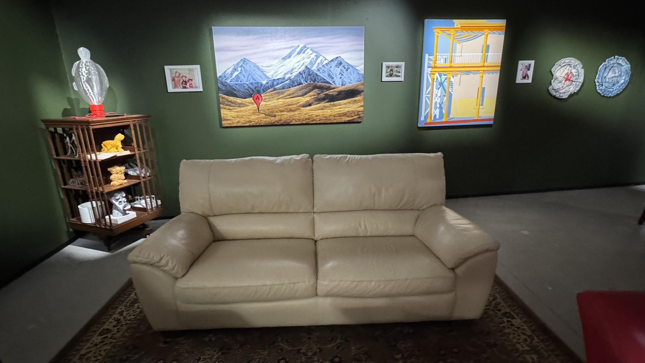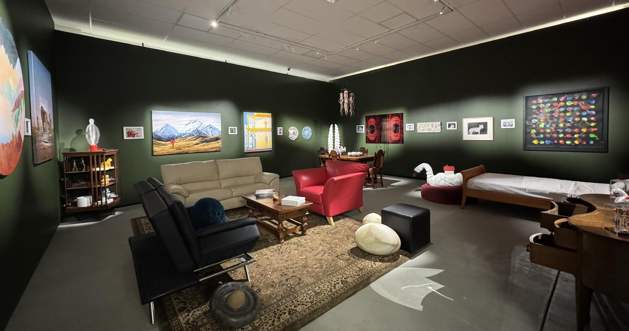 Come in, sit down, soak up the experience, imagine these artworks in your own home. Everything is for sale—even the furniture.