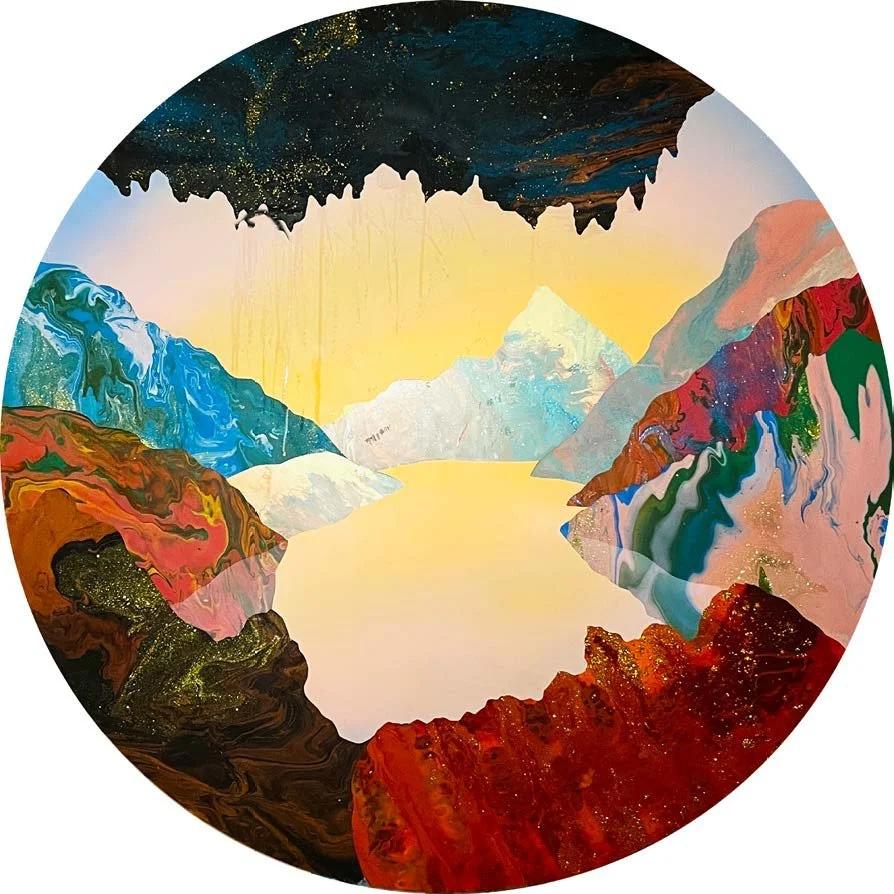 Acrylic on canvas framed, 152 x 152 cm, $11,000