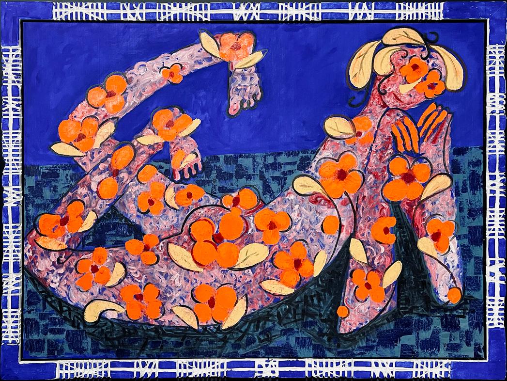 He studied fine arts (Painting) at the Victorian College of the Arts and was a founding member of the famous Roar Studios collective in the early 1980s. Their interest in Expressionism and Primitivism shows in Mark’s ongoing art journey. His style conjures landscapes, shapes, figures, and forms all with a fluid line-work. He expresses his themes in bold striking and often vibrant colour.