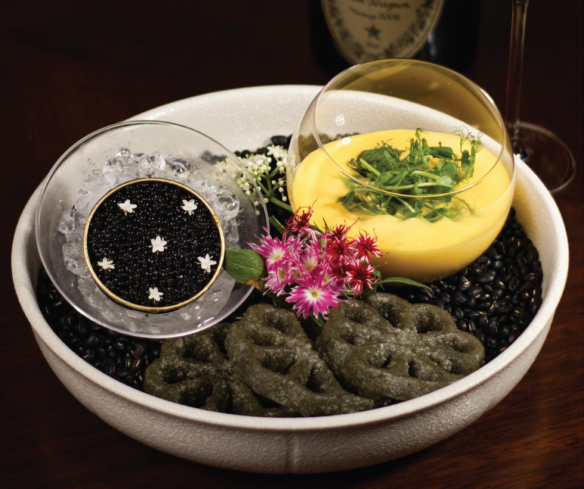 We are honored to present this nine-chapter taste journey of very special dishes. From the noble opening notes of the Colonial Salt Selection, through the bold breakthrough of the Quảng Nam Noodle Broth with Frog Leg in the Amuse, you will continue to discover the luxury of the Carabineros Red Prawns nestled in a dreamy, purple Sweet Potato Soup. The glorious highlight of our feast is the New Zealand Young Lamb Rack, meticulously prepared.