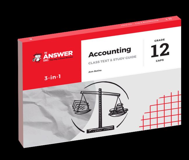 Our newly REVISED Accounting study guides provide an organised framework that ensures the mastering of essential skills in this exact subject. The methodical approach to unpacking content from basic skills to mastering more complex concepts gives learners a decided advantage for exam success Learners develop competence in exam technique and independent learning using exam-based questions and easy-access solutions for self-assessment.