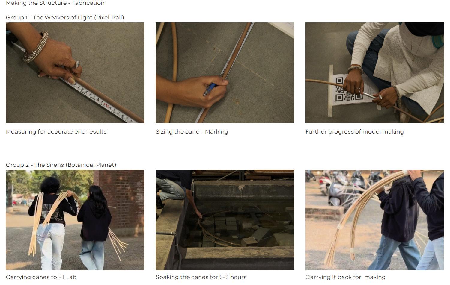 The collaborative workshop between Heriot-Watt University Dubai and CEPT University in Ahmedabad, India, was a unique opportunity to engage in hands-on learning, cultural exchange, and the exploration of cutting-edge architectural technologies. Held at the renowned CEPT University, the workshop focused on designing and building a 1:1 scale entrance portal using cane as the primary material, integrating advanced software tools such as Grasshopper, Culebra, Fologram, as well as application of AR.