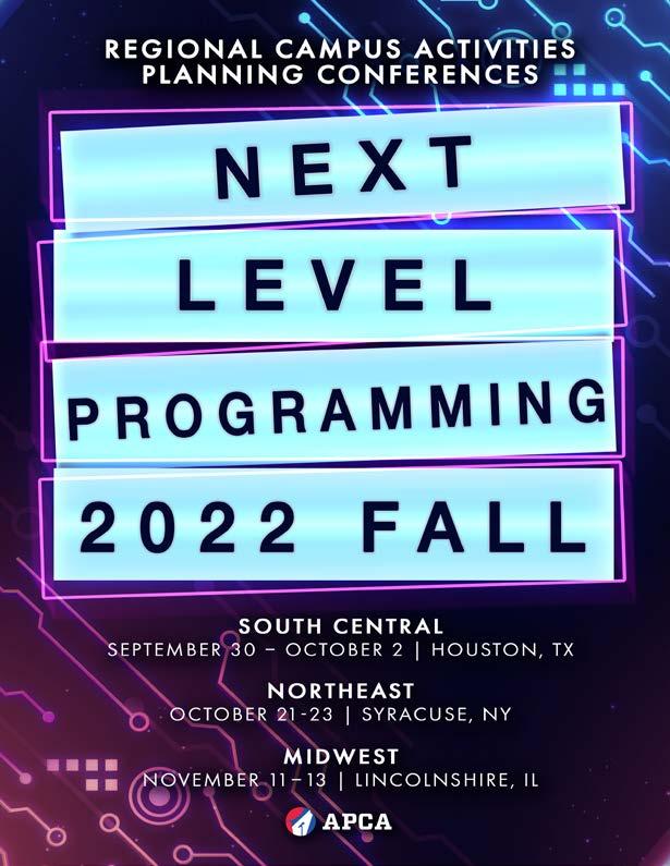 If you’ve never been to an APCA conference, please reach out and explore the possibilities that our fall events can offer you. You can find everything you need there to get your campus population engaged, retained, and entertained! Check it out at www.apca.com and make plans to join us today at one of our three fall conference locations: