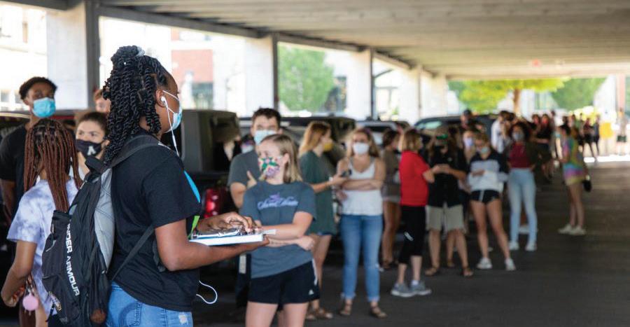 COVID-19 hits: In March 2020, the pandemic swept across the globe and dramatically shifted life as well know it. App State transitioned to remote learning, and students grappled with the challenges of adjusting to online classes and social distancing measures. A line of students wait to undergo testing for COVID-19 in College Street Parking Deck September 2020.
