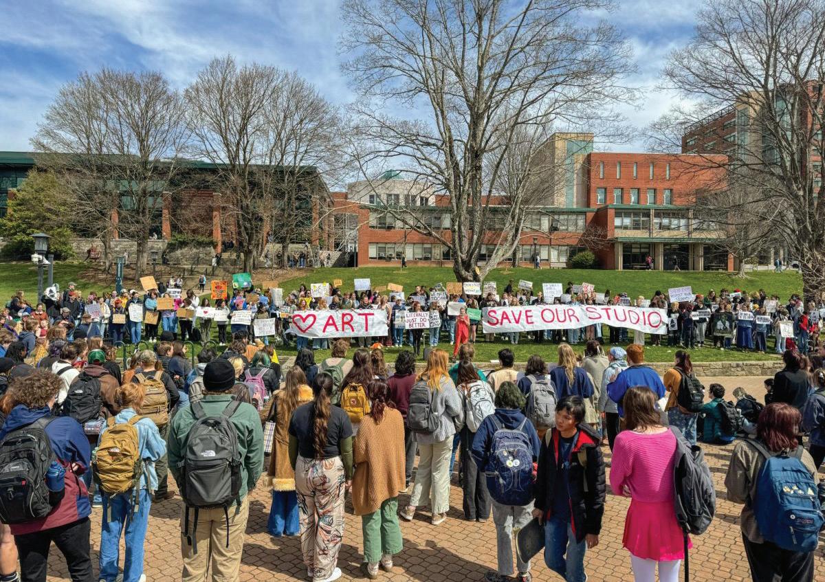 Art protests: The sudden closure of Wey Hall provoked upset among the art community, leading to much discussion and peaceful protests for the advocacy of students’ safety in Wey Hall. Students assemble on the main strip of Sanford Mall on March 28.