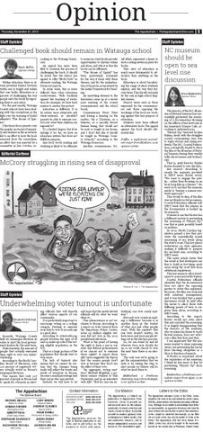 Letters to the Editor The Appalachian welcomes Letters to the Editor. Letters should be 250 words or less and include the author’s name, ASU Box, phone number, classification and campus affiliation, if any. Although we are unable to acknowledge those letters we cannot publish, we appreciate the interest and value the views of those who take the time to send us their comments. Letters should be submitted electronically via our Web site or e-mail. Letters may also be mailed to “Letter to the Editor,” The Appalachian, ASU Box 9025, Boone, N.C. 28608. Letters may also be brought to the newsroom, located on the second floor of Plemmons Student Union.