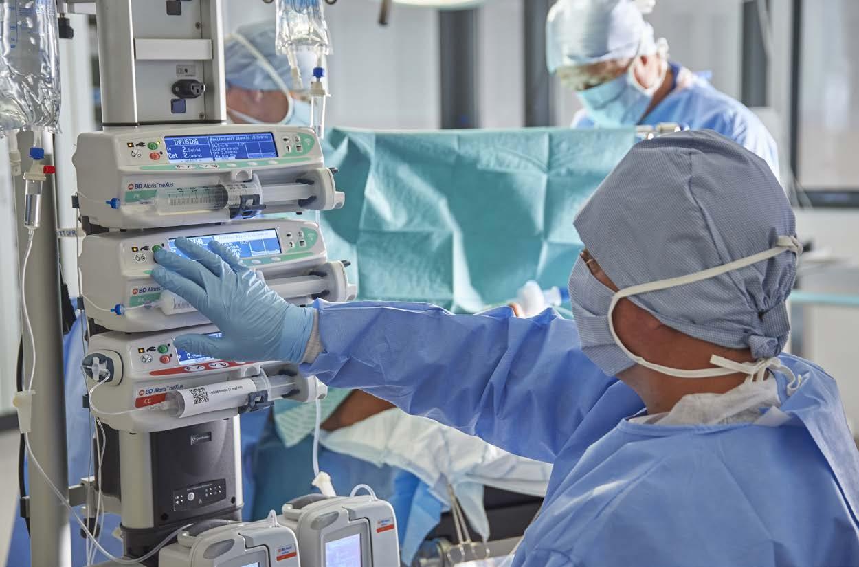 Key features of an ideal TCI infusion system or pump are: • A large, clear display that is easy to navigate during the many critical phases of anesthesia and easily viewed from a distance when multiple devices surround the patient during surgery. • Critical information such as decrement time, current Cet or Cpt and respective targets, current dose rate and concentration and type of agent being infused can be displayed at the same time on one screen. • Patient parameters used during the setting-up of infusions appear on one screen to avoid the need for shuttling through multiple screens to check vital information. • An option for using pediatric TCI models. • The ability to edit and customise the programs used. For example to allow for the most commonly used drugs to be at the head of every loaded formulary, to have dedicated profiles for individual anesthetists and to be able to load research agents or new medications into the pump’s drug library. The ability to set default values and safety limits for the parameters that TCI commonly require to be loaded in order to calculate induction and maintenance doses. For example if adult patients are being anesthetised it is ideal if the weight default is set at 75 kg, age to 50 years and height at 180 cm. This saves a great deal of time for the anesthetist in a busy Operating Theatre. A TCI PUMP CONSISTS OF A USER-INTERFACE TO ENTER PATIENT DETAILS AND TARGET PLASMA OR EFFECTSITE CONCENTRATION, A SOFTWARE PACKAGE WITH PHARMACOKINETIC / PHARMACODYNAMIC MODELS TO CONTROL THE INFUSION RATE AND HARDWARE TO ACCURATELY DELIVER THE INFUSION. THE PATIENT’S EXPECTED DRUG CONCENTRATION IS CONTINUOUSLY CALCULATED BY THE PUMP, AND PUMP INFUSION RATES ARE ALMOST CONTINUOUSLY ADJUSTED, TYPICALLY AT 10-SECOND INTERVALS.