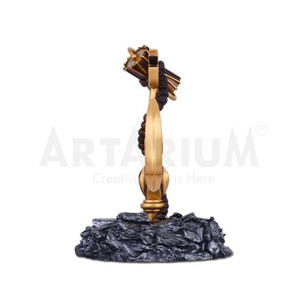 Introducing the "Lord Shiva Trishul With Damru" - a divine addition to any space, be it your home, office, temple, or restaurant. Made with meticulous precision and profound devotion, our Trishul Damru idol is a masterpiece of spiritual significance and artisanal excellence. Embellished with the sacred symbols of Lord Shiva – the Trishul and Damru – and adorned with a radiant "OM" design, it emanates courage and strength.