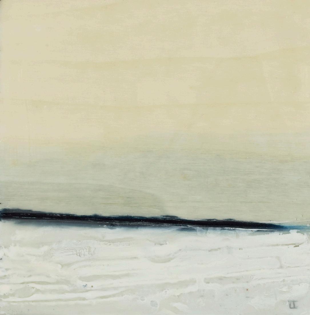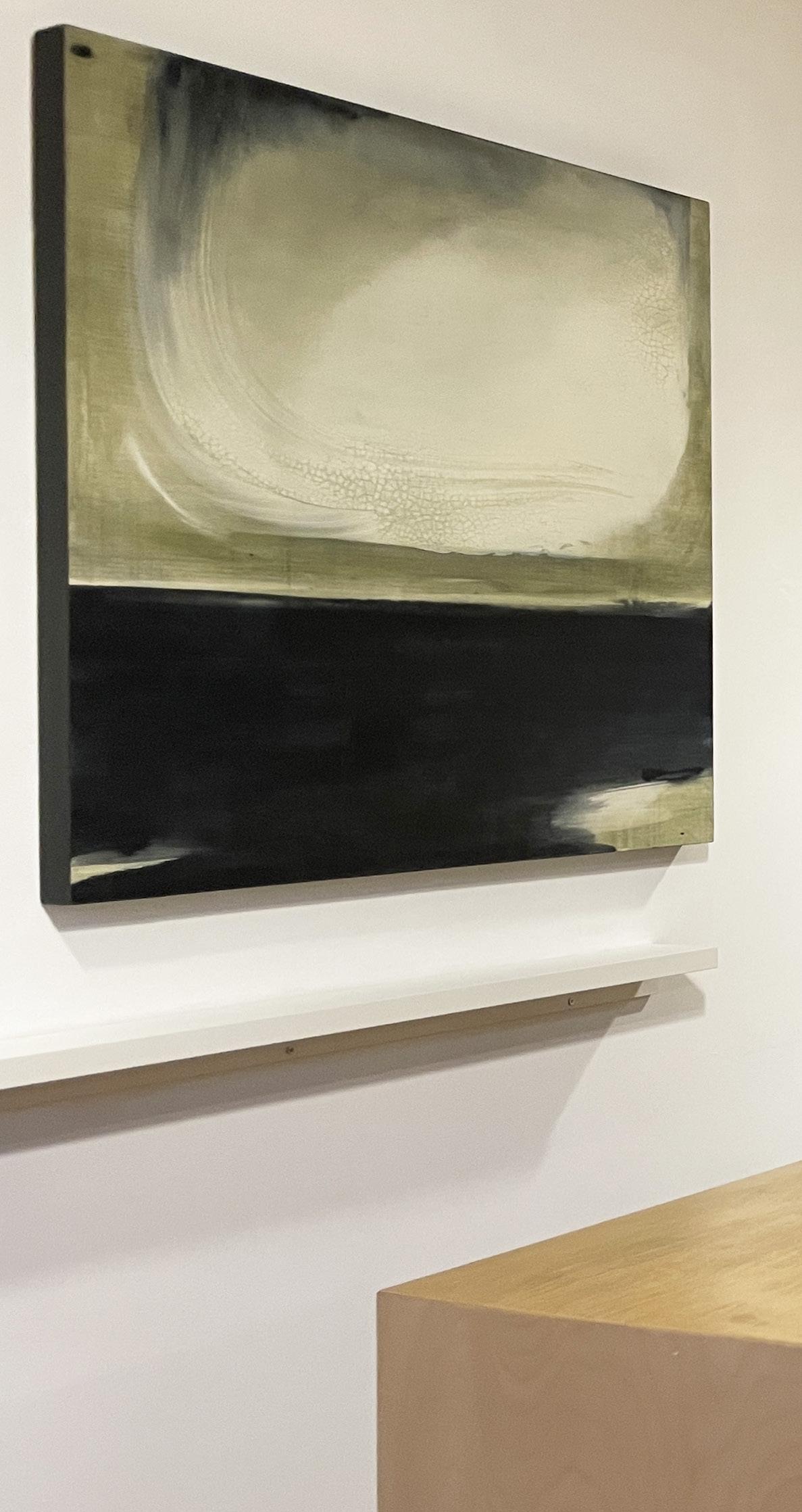 Her paintings seek not to depict a particular place but to distil atmosphere, charting the meeting point between an external landscape and an internal response. Process lies at the heart of her work, with each layer building a sense of history and depth. The surfaces often reveal quiet traces of earlier marks that hold a feeling of time, tension and transformation.