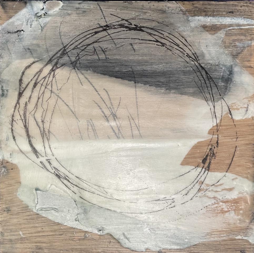 Lindsey’s current practice centres on abstract mixed media painting that draws inspiration from elemental forces in the landscape, including shifting light, weathered surfaces and the steady rhythm of nature. Her work is both intuitive and physical, shaped through layers of paint,