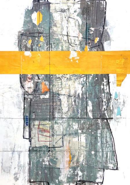 Davidson’s New Hat series consist of 70 paintings. “I start with a basic drawing, building with color and shape, coming to life with gesture and flow. As the title suggests, the hats are important, and the millinery designs emerge. There is much joy in their creation and my passion for playful designs is reinforced by their bright colors, linear rhythms and patterns leading our eyes around and through the painting. My newest series is even more abstract, with an even stronger emphasis on design. I do like to use stamping, along with painting, because I love the result. When I finish with a painting, I adhere the canvas with mat gel to gator board, creating a nice tight surface. My paintings are always framed.” Mary Davidson - PO Box 697, South Egremont, Massachusetts; 413-528-6945 / 413-717-2332; mdavidsongio@aol.com, marydavidson83155@gmail.com www.davidsondesigncompany.net