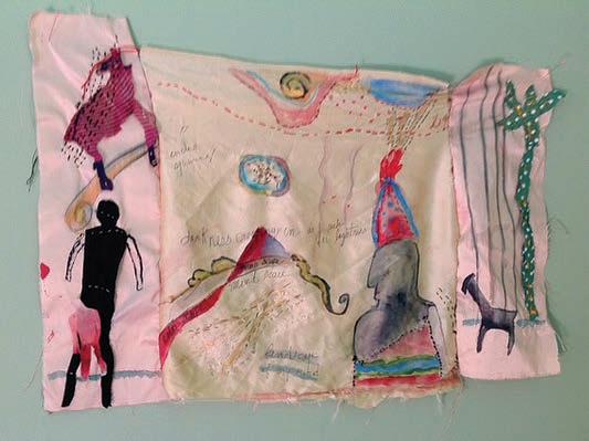 My first love was clay, so basic, earthy and obsessively compelling, I adored making pottery shapes and objects, resembling torsos. A period of fascination with vintage tin cans, bottle caps and junky metal discards followed. Metal was sheared, punched, riveted and assembled into figurative shapes. I began to use fabrics with these works and eventually abandoned metal for hand stitching doll sculptures, totems and collages, all with second hand or recycled fabrics.