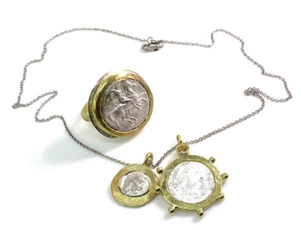 Silver Coin Extravaganza. Ring & 2 pendants. 18kt.