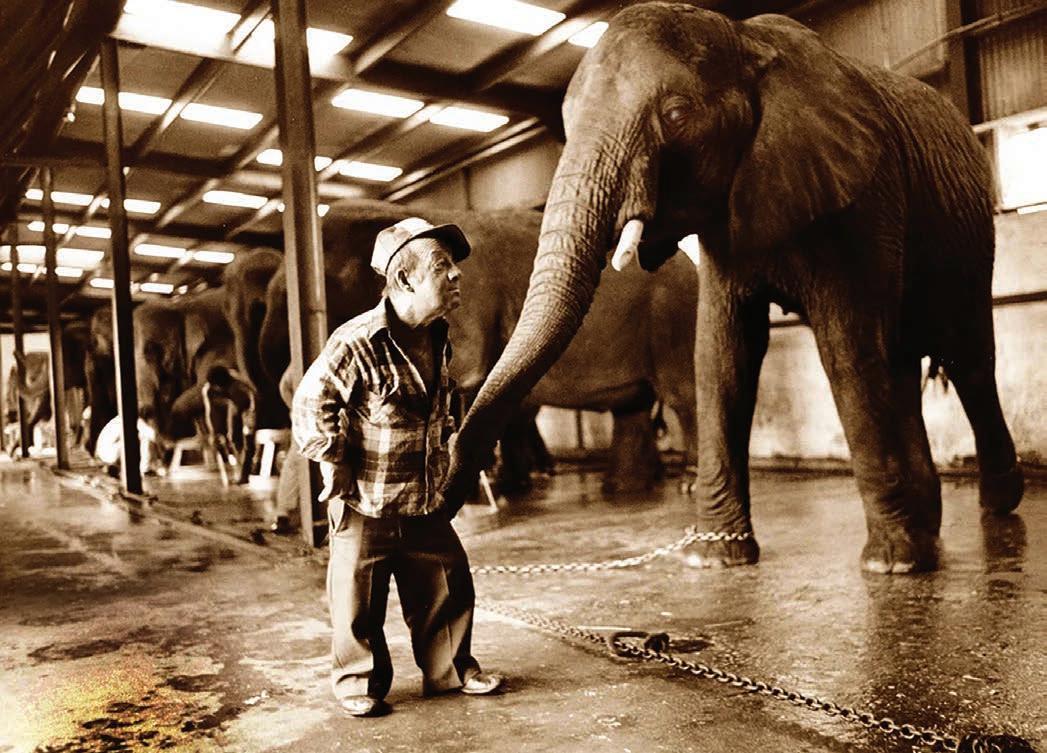 “It is a very odd situation for a carnival to remain in one place for a number of years. In general, carnivals, like our establishment, move from place to place, traveling at least once a month if not more often, and are constantly on the road. How did it come about that we have remained here for so long? It happened quite by accident. One day we set up our tents, booths and rides in an accommodating field, near a small town, only to discover that, without realizing it, we were within sight of the interstate highway. We discovered that it was possible to see the tops of our tents and their flags, from the highway, and as cars would come to the top of a rise in the road there we would be, beckoning travelers to take a break from their journey and visit us. But, it was not the sight of the tents and banners that was so attractive to them, it was the elephant that happened to be tied to a telephone pole just within sight of the road. Now there is something compelling and hypnotic about an actual live elephant, and I believe that there is no person, no matter how busy, jaded or insensitive who, when they round a curve, and an elephant comes into view, would not instantly put their foot on the brake, and slow down to get a better look at the sight.