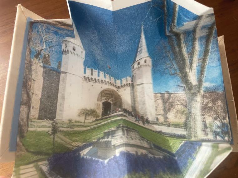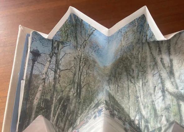 Tunnel books, a novelty popular in the late Nineteenth Century, use printed layers with cutouts to create three-dimensional works. Their appeal derives in large part from the aesthetic tension or play between the illusion of three dimensions in the printed images on the surface of the layers, and the actual three dimensions of the layers with their cutout shapes.