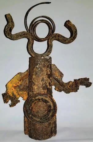 Whimsical Sculpture by Jeffrey Bynack made from found metal parts & objects. Welded and mechanically fit. Perfectly suitable for indoor and outdoor enjoyment.