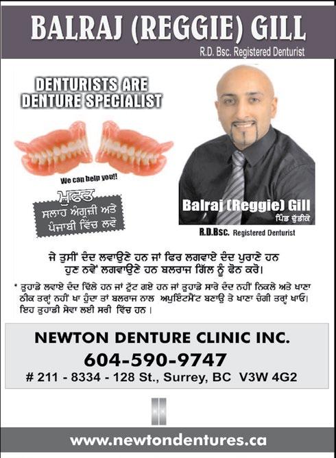 # 103 - 12030 - 80 Ave, Surrey 604-595-8888 RA JDEEP SINGH SEKHON B.A. (Hons.), M.A.LL.B. 778-320-5359 PREC SRS PANORAMA REALTY kI qusIN Awpxw Gr KrIdx jW vycx bwry soc rhy ho! th #104 – 7110 120 Street Surrey, BC V3W 3M8 Ph: 604-503-3853 Fx:604-503-3854 HARINDER DAIL Notary Public, M.A (ALS) M.B.A. B.Sc Professional Serv ices Provided • Estate Planning • Will Preparation • Legal Documents • Power of Attorney • Affidavits • Notarization • Real Estate Purchase or Sale of Property • Trave Documents Honesty - Integrity - Trust HARINDER DAIL Notary Public, M.A. (ALS) M.B.A. B.Sc GrW dI KrIdo ProKq AYstyt plYyinMg vsIAqnwmw numwieMdgI smJOqw kwnUMUnI shwieqw ieMmIgrySn kmrSIAl lIz ibzns ienkwrporySn kwrporyt sMBwl ibzns dI KrIdo ProKq PYmlI lwA spWsriSp lYtr nOtrI syvwvW muKiqAwrnwmw ijld: 20 AMk 41 - THURSDAY, DECEMBER 03, 2022 PUNJABI STAR ravi@theasianstar.com Tel: 604-591-5423 hr qrWH dIAW Cell: 778-895-7444 Fax: 1-800-732-0519 Email: icc.accounting@yahoo.ca Web: www.iccaccounting.com 8740 - 140A St., Surrey, BC V3W 0M4 kYnyfw tIm ny fyivs k`p 2022 ij`iqAw -jsitn trUfo ny tIm ƒ vDweI id~qI srI ivc 23 swlw pMjwbx muitAwr lwpqw Baljit Singh 778 861 0324 #285 - 8128, 128 St. Surrey, BC V3W 1R1 Send Money Instantly Worldwide AsIN XUAYs fwlr / XUro Aqy pONf vI KrIddy qy vycdy hW duinAw dy iksy vI kony iv`c pYsy Byjx jW mMgvwaux leI imlo Daljit Singh 778 822 8410 #2A - 2599, Cedar Park Pl. Abbotsford, BC V2T 3S4 qIjI iqmwhI iv~c bYNk AwP kYnyfw ƒ hoieAw 522 imlIAn fwlr dw nukswn srI, 24 nvMbr 2022- srI Awr.sI.AYm. pI. v~loN iek pMjwbx muitAwr dy lwpqw hox dI sUcnw jwrI kIqI geI hY[ ies sUcnw Anuswr 23 swlw jsvIr prmwr 21 nvMbr qoN lwpqw hY[ aus ƒ AwKrI vwr 21 nvMbr ƒ 133 stRIt dy 6600 blwk ivc vyiKAw igAw sI[ Awpxy pirvwr nwl aus ny AwKrI vwr 22 nvMbr dI svyr ƒ sMprk kIqw sI pr aus qoN bwAd aus dw koeI Qhu-pqw nhIN iml irhw[ bwkI pMnw 6 qy... Etvw: bYNk AwP kYnyfw ny ies swl qIjI iqmwhI iv~c 522 imlIAn fwlr gvwey[ 87 swlW dy ieiqhws iv~c bYNk ƒ ipAw ieh s~B qæoN v~fw Gwtw hY[ sYNtrl bYNk dI kuAwrtrlI PwienWSIAl irport iv~c AwiKAw igAw ik ies dI sMpqI qoN imlx vwly ivAwz qoN hox vwlI Awmdn dw bYNk iv~c jmHW ifpwijæts dy ieMtrst cwrijz nwl qwlmyl nhIN bYT sikAw ijs kwrn ieh Gwtw ipAw[ bYNk AwP kYnyfw dIAW ies swl qyzI nwl vDIAw ivAwz drW kwrn ies v~loN hornW v~fy bYNkW dy KwiqAW iv~c jmHW krvwey jWdy sYtlmYNt bYlYNs ifpwijæts au~qy ieMtrst cwrijz dI lwgq iv~c vI vwDw hoieAw[ ies dOrwn
