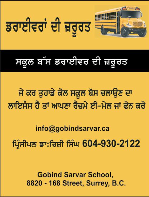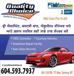 All advertising in The Asian Star is subject to the publishers’ approval and the advertiser agrees to indemnify the publishers against claims arising from publication of any advertisement submitted by the advertiser. kYnyfw ’c nhIN ruk irhw h~iqAw dw islislw; hux Albrtw sUby ‘c 24 swlw nOjvwn dI h~iqAw DMJ Painting Ltd. * Old & New Homes * Town H ouses Appartments * Commercial & Residential * Interior & Exterior * Any kind of Paint Job Just one call for your all painting needs * St u c c o P a in t * Sp r a y P a in t in g * P r e s s u r e Wa s h in g * S k y P a in t f o r C e il in g * F e n c e P a in t in g * R o ll in g P a in t in g Free estimates - Fast and quality work 604-767-4954 604-338-7147 Mandeep Jagdeep Over 10 Years of Experience lrinMg lwiesYNs lrinMg lwiesYNs dI iqAwrI kMipaUtr nwl krvwauNd hW AwtomYitk hweIv tr`k - n gyAr n kl`c AOrqW vwsq sunihrI mOkw, hux qusIN kwr dI qrWH ibnW gyArW qoN klws 1 dw lwiesYNs l skd h j tr`k dw lwiesYNs lYxw cwhuMd h pr AMgryzI nhIN AwauNdI jW G`t AwauNdI hY, bu`k dyK k Gbrw jWd h qW fr nw, hux Pon kr 604 614 5365 A-Z A-Z Learning School Unit # 15 - 8388, 128 St, Surrey kwr / tr`k / motrswiekl tYksI jW eyAr bryk dw lwiesYNs pMjwbI ‘c lYx leI sMprk kro AsIN istIjnis~p dy tYst dI iqAwrI vI krvWdy hW