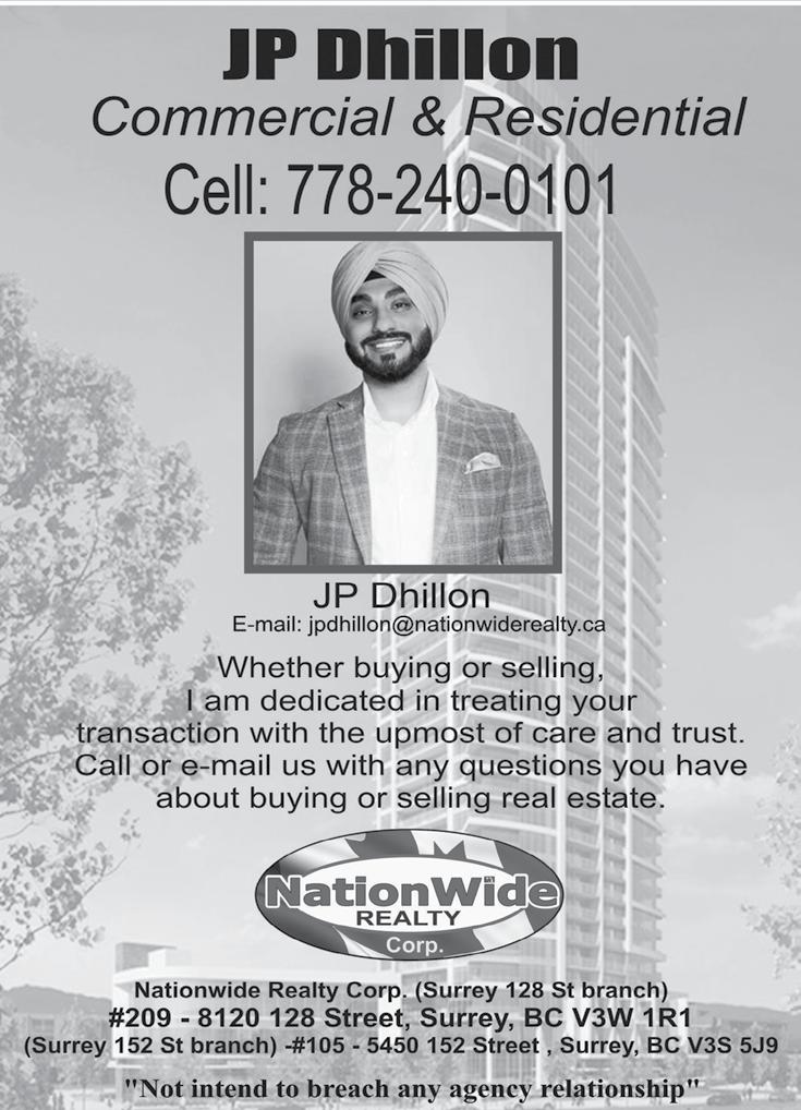 th #104 – 7110 120 Street Surrey, BC V3W 3M8 Ph: 604-503-3853 Fx:604-503-3854 HARINDER DAIL Notary Public, M.A (ALS) M.B.A. B.Sc Professional Serv ices Provided • Estate Planning • Will Preparation • Legal Documents • Power of Attorney • Affidavits • Notarization • Real Estate Purchase or Sale of Property • Trave Documents Honesty - Integrity - Trust HARINDER DAIL Notary Public, M.A. (ALS) M.B.A. B.Sc GrW dI KrIdo ProKq AYstyt plYyinMg vsIAqnwmw numwieMdgI smJOqw kwnUMUnI shwieqw ieMmIgrySn kmrSIAl lIz ibzns ienkwrporySn kwrporyt sMBwl ibzns dI KrIdo ProKq PYmlI lwA spWsriSp lYtr nOtrI syvwvW muKiqAwrnwmw (604)771-3089 Fax: (778)654-9226 | Email: info@NaiyaGillLaw.ca www.NaiyaGillLaw.ca ijld: 22 AMk 16 - SATURDAY, JUNE 15, 2024 PUNJABI STAR ravi@theasianstar.com Tel: 604-591-5423 hr qrWH dIAW Cell: 778-895-7444 Fax: 1-800-732-0519 Email: icc.accounting@yahoo.ca Web: www.iccaccounting.com 8740 - 140A St., Surrey, BC V3W 0M4 qnpRIq