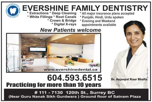 604-358-0590 www.manmohansekhon.com Life and Health insurance Advisor Unit 252 - 8138, 128 St, Surrey, BC V3W 1R1 Continued on page 6 Vol 21 - Issue 49 Saturday,