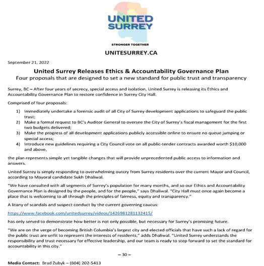 Complaints will be filed with Elections BC. These complaints will name Keep The RCMP in Surrey, Surrey Connect, Brenda Locke and Ramona Kaptyn. It is our expectation that the investigation and consequences will be applied prior to October 15.