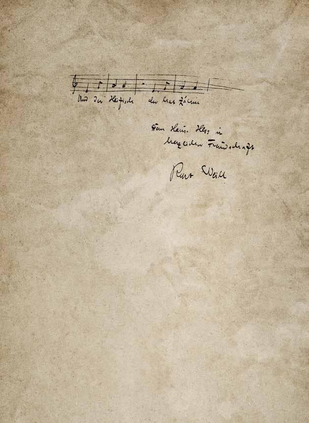 erzielen. Ob er in der Dreigroschenoper für eine höchst individuelle Kombination schreibt (sieben Spieler, die auf 25 Instrumenten alternieren) oder für die unterschiedlichsten Broadway-Theaterorchester – er verstand es, mit jeder Orchesterbesetzung virtuos umzugehen. Im Kontext des heutigen Programms stellt uns dies vor logistische Herausforderungen: Fast jeder Song erfordert eine andere Besetzung, oft unter Verwendung von Instrumenten, die im klassischen Sinfonieorchester nicht vorkommen. Dies hätte das Engagement zahlreicher Aushilfen erfordert, und manche Musiker*innen hätten nur ein oder zwei Nummern zu spielen gehabt. Wir führen deshalb einige Songs in eigens angefertigten neuen Orchestrierungen auf oder retuschieren Weills Originale geringfügig. Dabei wurde großer Wert darauf gelegt, Stilistik und Charakter der jeweiligen Songs zu wahren. Berücksichtigt wurde zudem Weills Vorliebe für kleinere Orchesterbesetzungen, die zu einem transparenten, fast kammermusikalischen Klang führen. Einige Stücke präsentieren wir – auch darin Weills eigener Praxis folgend – mit Klavierbegleitung, um die Intimität der Vertonung zu unterstreichen, deren Wort-Ton-Verhältnis nicht weniger kunstvoll ist als in einem Schubertoder Brahms-Lied.