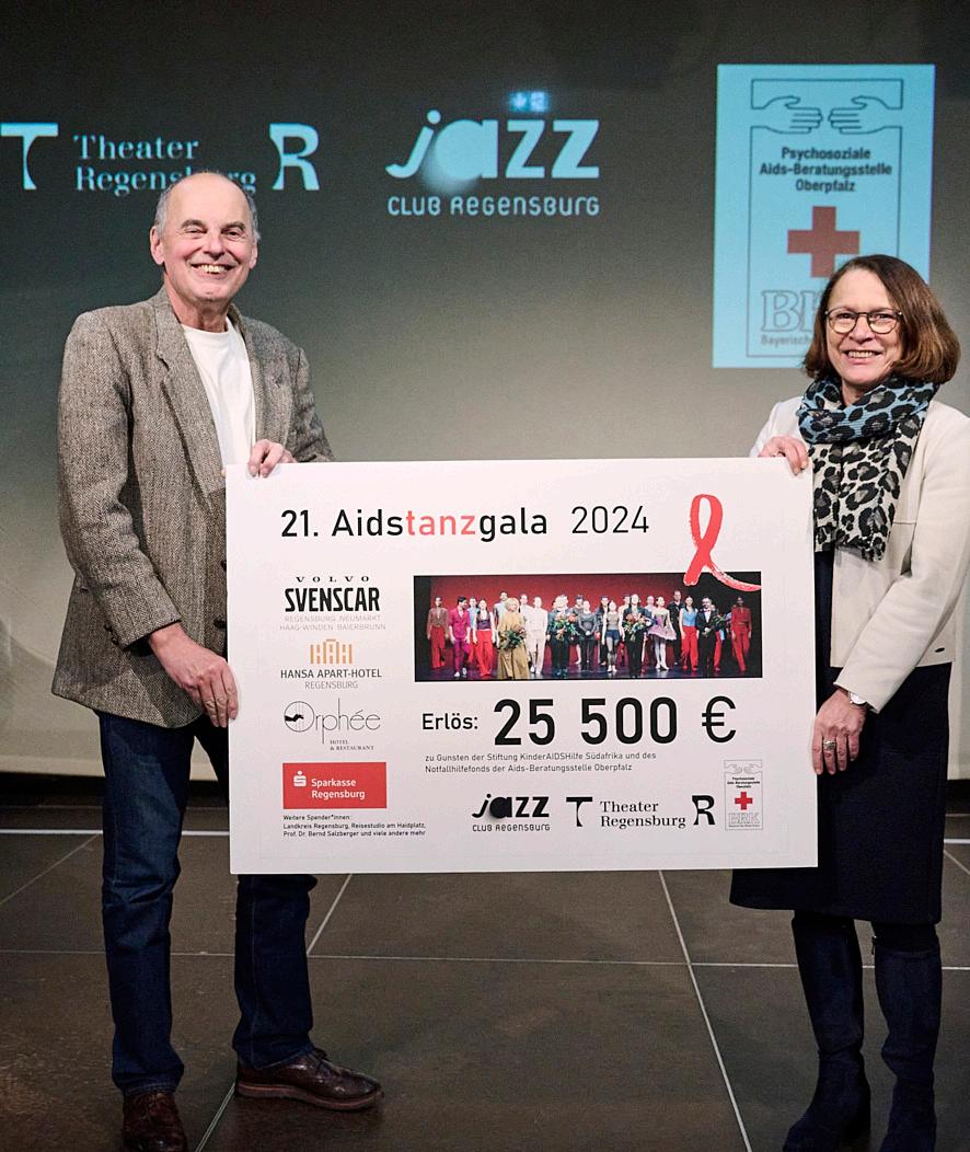 GALA seit 2003“, freute sich Hans-Peter Dorsch von der Aids-Beratungsstelle Oberpfalz des BRK. Die Schirmherrschaften Prof. Dr. Bernd Salzberger und OB Gertrud Maltz-Schwarzfischer übergaben den Scheck symbolisch im Januar 2025.