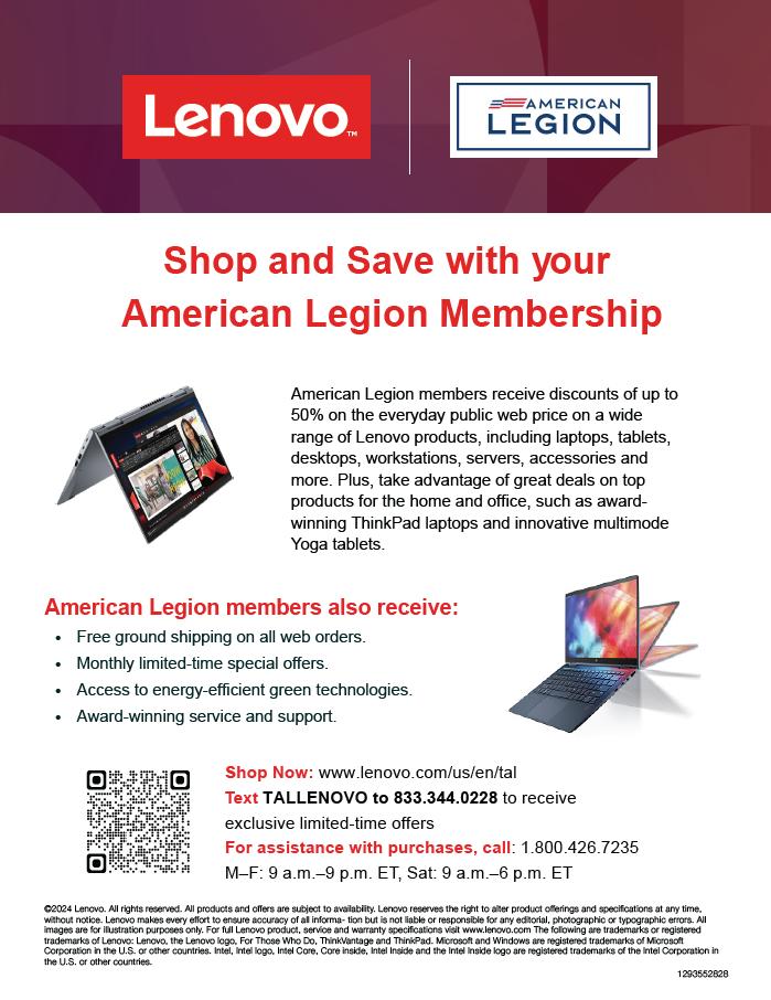To learn more about Member Discounts, please visit https://www.legion.org/benefits