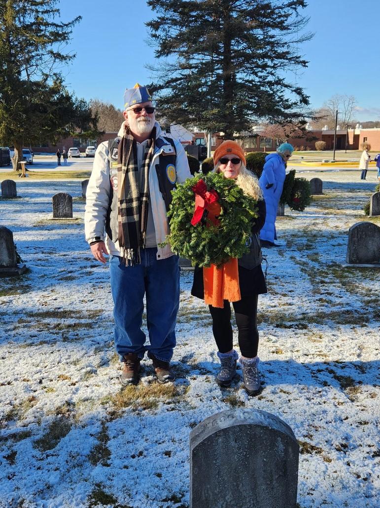American Legion Auxiliary (ALA) Unit 105 President Debbie Hall, a first time attendee to Wreaths Across America Day, walked away moved by the experience. “To see the names and realize how many men and women gave themselves to protect our country is something that can't be explained. It's emotional, heartwarming, and heartbreaking to know many died fighting to defend our freedom, and an honor that we are able to place a wreath in their memory.”