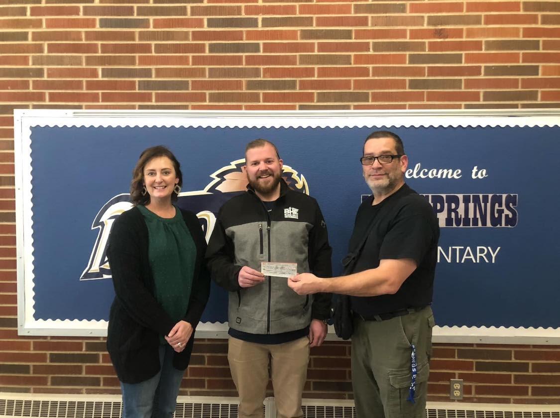 Squadron 71 Adjutant Jace Thomas (Battle Mountain, SD) presented a check to Hot Springs Elementary School for their school food program. The school hands out 92 bags weekly on Thursdays to students, so those kids have enough food for meals over the weekend. The school has a grocery store that serves parents of elementary students that provides extra meals for the week if needed, with cereals, spaghetti with meat sauce, soups, and lots of vegetables. They