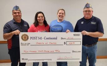 Our local charities include Packs for Pirates; an organization that sends food home with school children who may not otherwise get meals while not in school. Continental Blue and Gold Club; Athletic Boosters for the High School (the only school system in the small community). Continental Senior Connection; a new organization in our community for our older citizens. Continental Fire Department, Continental Parents of Pirates; our local PTA organization; Continental Lions Club, Continental High School Cheerleaders, Continental Police Department, and Continental High School Band Boosters. The Continental Sons of The American Legion, part of the Post 541 American Legion Family, are a very active squadron made up of over 230 members and donate over $30,000 annually to local and Veteran Organizations.