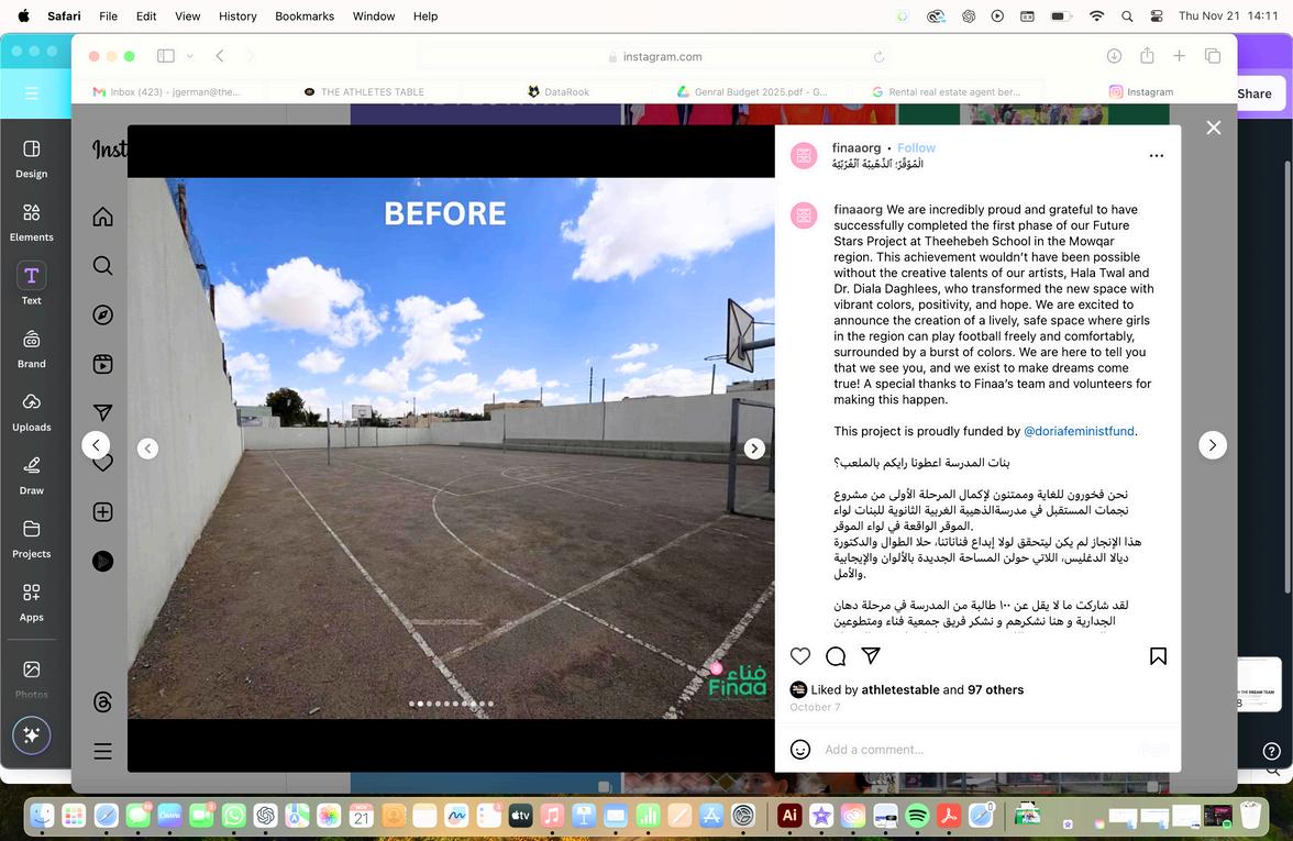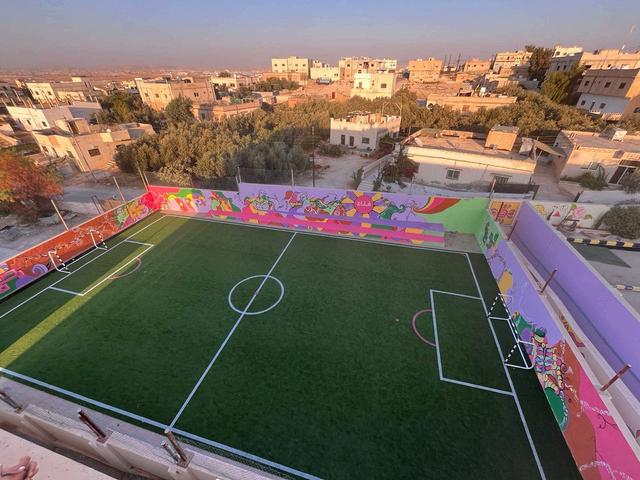 During the first phase, Finaa rehabilitates the backyard space of a specific girls school, or center. Working with local artists to design, and paint mural artwork around the pitch, making it a vibrant, and positive space for the girls it serves.